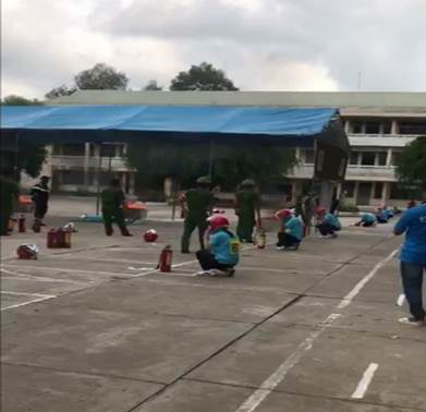Phần thi thực hành của Tổ liên gia PCCC khu phố 4, Phường 7