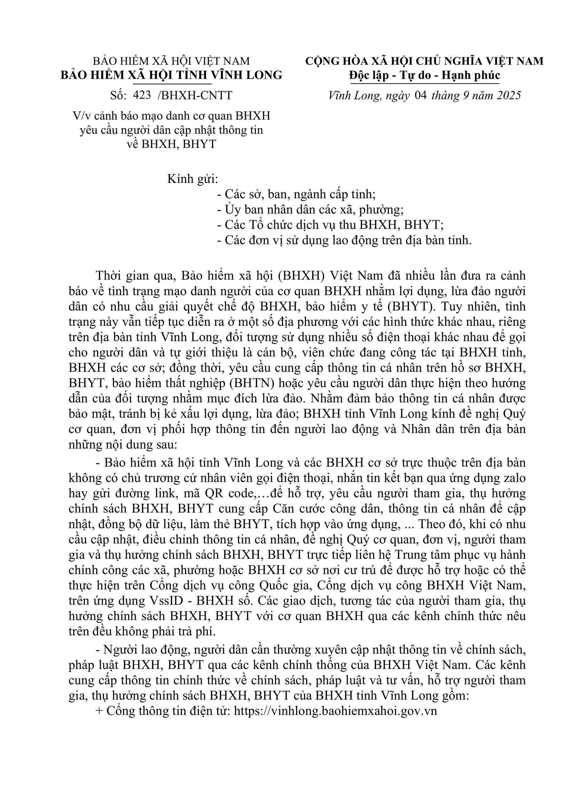 Thông báo cảnh giác mạo danh cơ quan BHXH yêu cầu người dân cập nhật thông tin BHXH, BHYT - 11/09/2025