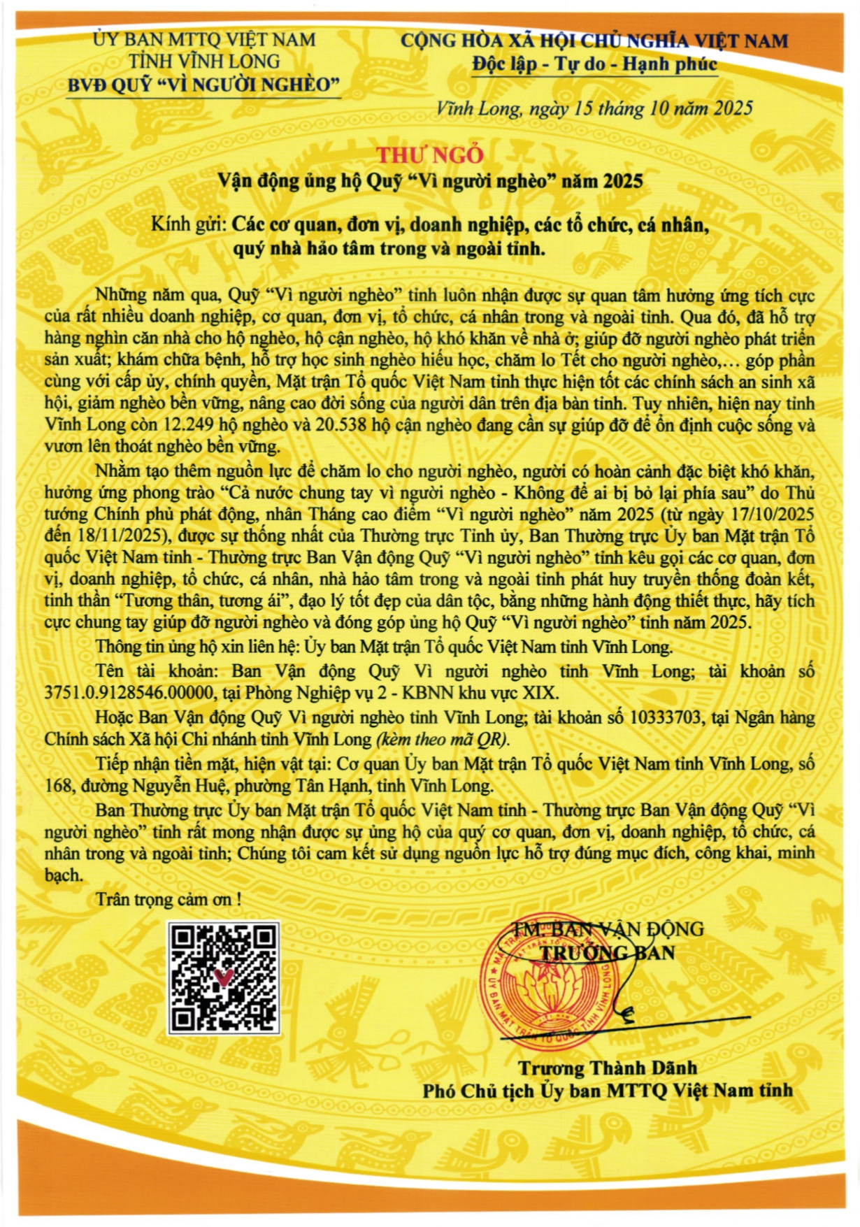 Thư ngõ vận động ủng hộ Quỹ vì Người nghèo năm 2025 - 17/10/2025