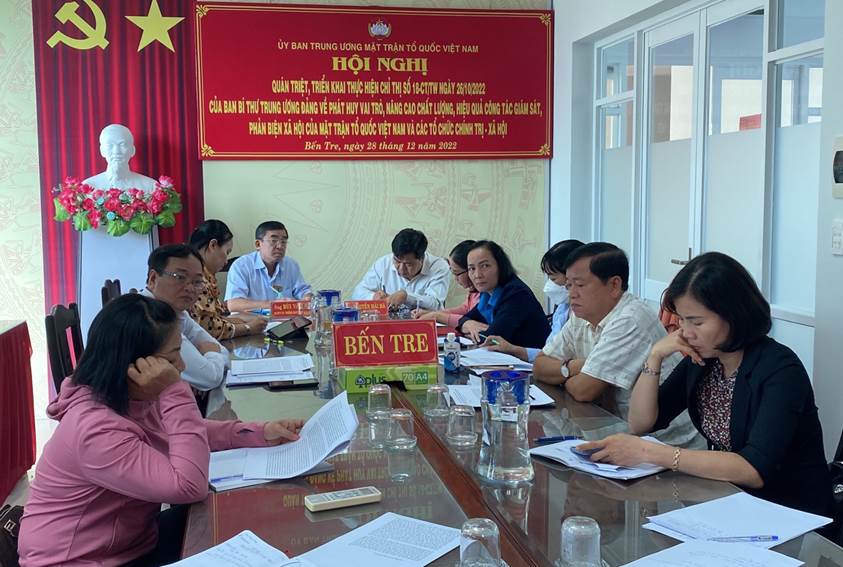 Ngày 28 tháng 12 năm 2022, Ban Thường trực Ủy ban Trung ương Mặt trận Tổ quốc (MTTQ) Việt Nam tổ chức hội nghị trực tuyến Hội nghị trực tuyến quán triệt, triển khai Chỉ thị số 18-CT/TW, ngày 26/10/2022 của Ban Bí thư Trung ương Đảng về phát huy vai trò, nâng cao chất lượng, hiệu quả công tác giám sát, phản biện xã hội của MTTQ Việt Nam và các tổ chức chính trị xã hội.